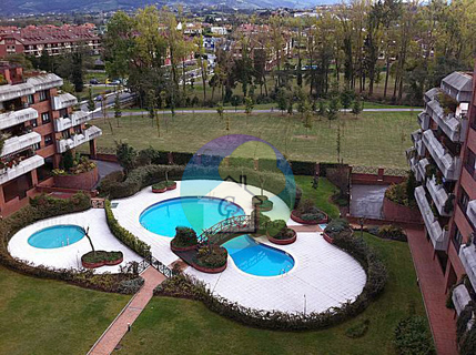 Alquiler en Gijón apartamento bajo cubierta en la zona de Viesques, mucha luz, salon comedor, cocina, 1 habitación y baño, urb. cerrada con piscina y jardin, vistas al parque fluvial, plaza de garaje y trastero.